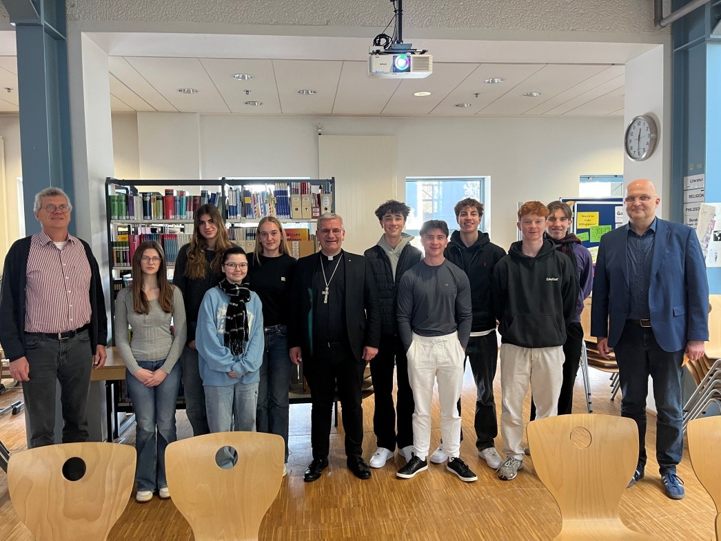 In einer offenen Gesprächsrunde berichtete der Weihbischof von seiner Arbeit und seinem Alltag im Erzbistum. Die Schülerinnen und Schüler hatten die Möglichkeit ihre eigenen Fragen zu stellen – zu Themen des Glaubens, aber auch zu aktuellen Herausforderungen der Kirche.