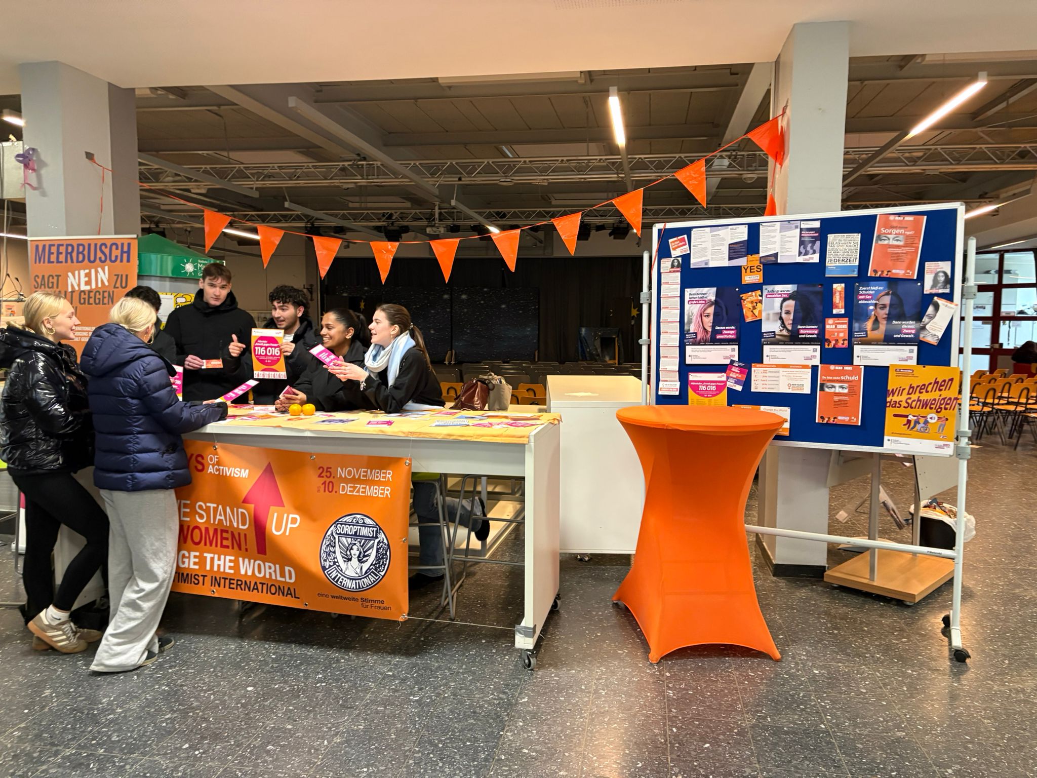Gewalt gegen Frauen ist kein fernes Problem, sondern Teil unseres Alltags. Genau deshalb beteiligten wir uns als Projektkurs der Q1 zum Thema Feminismus an den Orange Days, die weltweit auf dieses Thema aufmerksam machen. Am Samstag, 29. November 2025 standen wir vor den Edeka-Märkten in Osterath, Büderich und Lank mit Informationskarten, Mandarinen (dem Symbol der Orange Days) und vor allem mit dem Wunsch, Menschen zu erreichen. Wir waren nervös, doch schon nach den ersten Gesprächen wurde klar: Unser Einsatz bewirkt etwas.